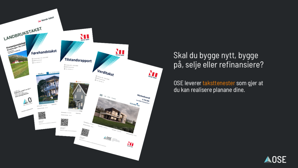 OSE AS er eit tverrfagleg miljø med arkitektar, planleggarar, rådgivande ingeniørar og takstingeniørar. Med lidenskapelege og dedikerte tilsette tek vi på oss store og små oppdrag for både private, offentlege og store næringsaktørar i regionen. Du finn oss på våre kontor i Ørsta og Ålesund. Vår visjon er å gi råd som realiserer visjonar. Dette er både ein ambisjon og eit løfte for kundane og samarbeidspartnarane våre. Innan våre satsingsområde ligg vi i front med kunnskap som einaste salsvare. Vi skal strekke oss etter måla våre og legge til rette for at tilsette oppnår utvikling, både fagleg og personleg.